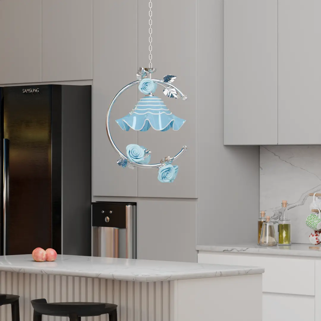 آویز ماه کروم با رز ، یک اثر هنری است که زیبایی و کارایی را در کنار هم قرار میدهد. طراحی این آویز به گونهای است که با استفاده از کروم براق و رنگ فیروزهای ملایم، حس آرامش و تجمل را به محیط زندگی شما منتقل میکند. این آویز بهعنوان منبع نوری، همزمان با ایجاد نور ملایم، توجهها را به خود جلب میکند و مناسب برای هر نوع دکوراسیونی، از مدرن تا کلاسیک، میباشد. با نصب این آویز، فضایی خاص و منحصر به فرد به خانه یا محل کار خود ببخشید.